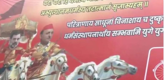 सपा पोस्टर में राहुल गांधी को अर्जुन के रूप में पेश किया