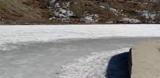 सिस्सू झील पर जमी बर्फ की परत, ठंड का बढ़ा असर