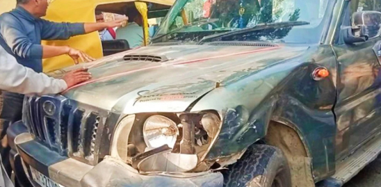 दुर्घटना के बाद चौराहे पर भारी जाम से यातायात प्रभावित
