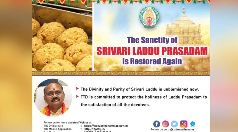 Read Moreतिरुपति, 21 सितंबर 2024 — तिरुपति बालाजी मंदिर के प्रसिद्ध लड्डू प्रसादम को लेकर चल रहे विवाद के बीच मंदिर