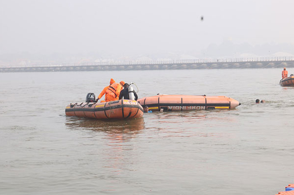 उत्तर प्रदेश के प्रयागराज में महाकुम्भ के लिए सुरक्षा के पुख्ता बंदोबस्त किए गए है। किसी भी आपात स्थिति खासकर वॉटर इमरजेंसी से निपटने के लिए राष्ट्रीय आपदा प्रतिक्रिया बल (NDRF) के जवान तैनात है।