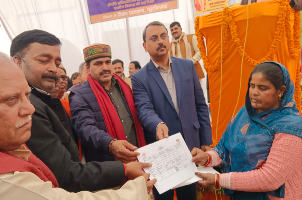 “ग्राम विकास की ओर कदम: घरौनी वितरण में बड़ी संख्या में लाभार्थी शामिल”